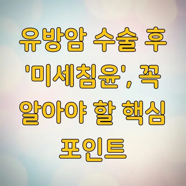 유방암 진단을 받고 수술을 마쳤다면, 이제 앞으로의 치료 방향과 예후에 대해 가장 궁금할 겁니다. 특히 수술 결과지에 '미세침윤(Micrometastasis)'이라는 단어가 언급되었다면, 이게 정확히 뭘 의미하는 건지, 그리고 앞으로 내게 어떤 영향을 미칠지 덜컥 겁이 나기도 하죠. 너무 걱정부터 하기보다는, 정확히 알고 나면 오히려 마음이 편해질 수 있거든요. 오늘은 유방암 수술 후 미세침윤이 무엇인지, 왜 중요하고 어떻게 관리해야 하는지에 대해 차근차근 이야기해 볼게요.